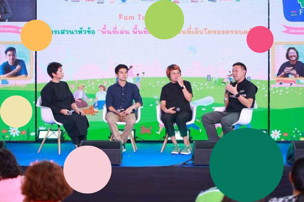 วงเสวนา “พื้นที่เล่น พื้นที่เรียนรู้ : พื้นที่เติบโตของครอบครัว” ในงาน FAM Fest 2025 กรมกิจการสตรีและสถาบันครอบครัว เมื่อวันอาทิตย์ที่ 25 กันยายน 2568