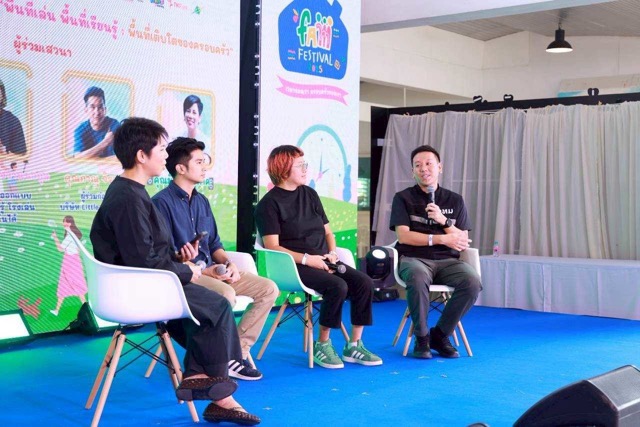 บนเวทีมีแขกรับเชิญสามคน ที่ล้วนทำงานเกี่ยวข้องกับ “พื้นที่” และ “การเติบโต” ในแบบของตัวเอง ไม่ใช่ในฐานะผู้เชี่ยวชาญเท่านั้น แต่ในฐานะคนธรรมดาที่เคยเป็นเด็ก และกำลังเป็นพ่อแม่ในยุคที่พื้นที่แบบนี้เริ่มหายากขึ้นทุกที