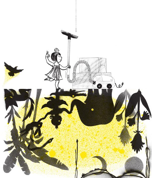 ส่วนในหนังสือภาพ Shadow เธอเล่นกับแสงไฟในห้องเก็บของ โลกในเงามืดค่อย ๆ กลับหัวจนเงาไม่ได้อยู่ใต้เท้าอีกต่อไป แต่มายืนข้าง ๆ อย่างเท่ากัน